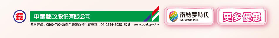 中華郵政及南紡夢時代購物中心保有修改及終止本活動之權利,未盡事宜以南紡夢時代購物中心店內公告為準。
