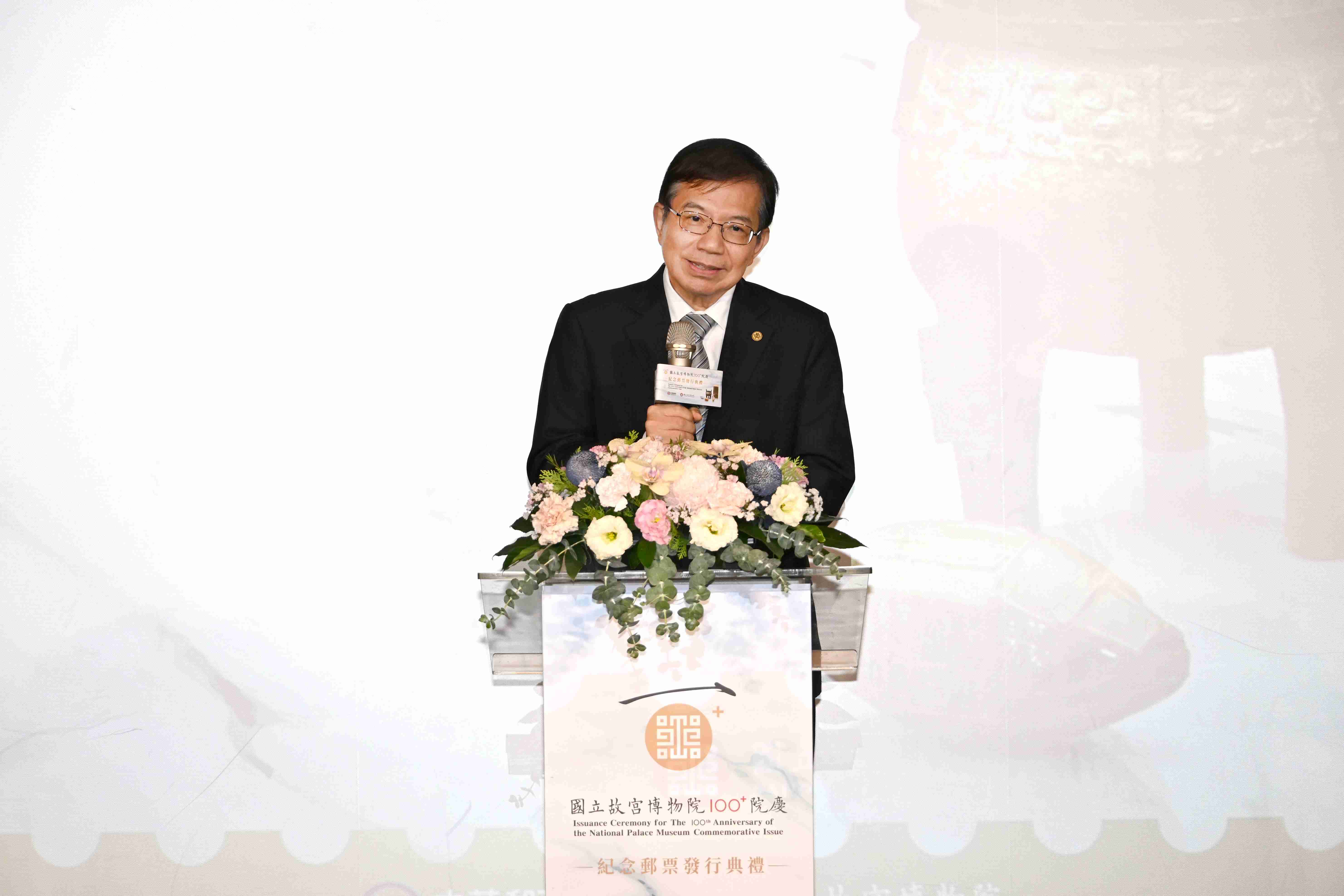 中華郵政董事長王國材致詞時指出,今年是故宮百歲生日,中華郵政明年也將邁入130歲,中華郵政和故宮有許多共同點,除了都是百歲的「資深的老人家」,還擁有最豐富的典藏國寶,因為華人圈最精彩的古文物就在故宮、而最傑出的郵票就在中華郵政。此次為慶祝故宮百年院慶,郵票主題精心挑選故宮典藏之商周時期的〈嬰祖丁鼎〉、北宋時期的〈汝窯 青瓷無紋水仙盆〉及〈宋 范寬谿山行旅圖 軸〉、清乾隆年間的〈洋彩玲瓏轉旋瓶〉與〈雕橄欖核舟〉5件文物為主題,他期許這套精美郵票能在世界流通,激發全球民眾的興趣,吸引大家親自來到臺灣,一睹故宮典藏瑰寶的廬山真面目。