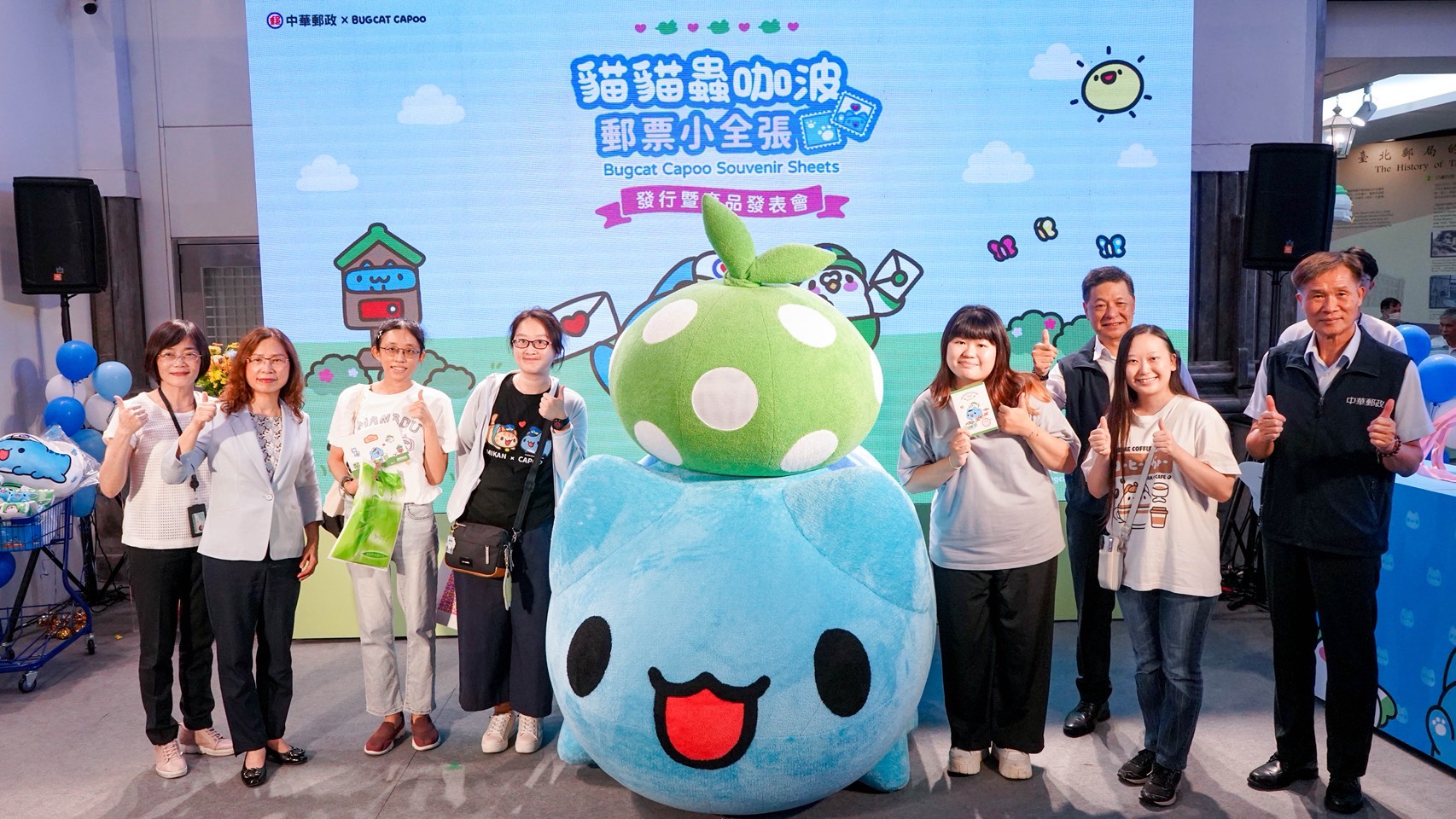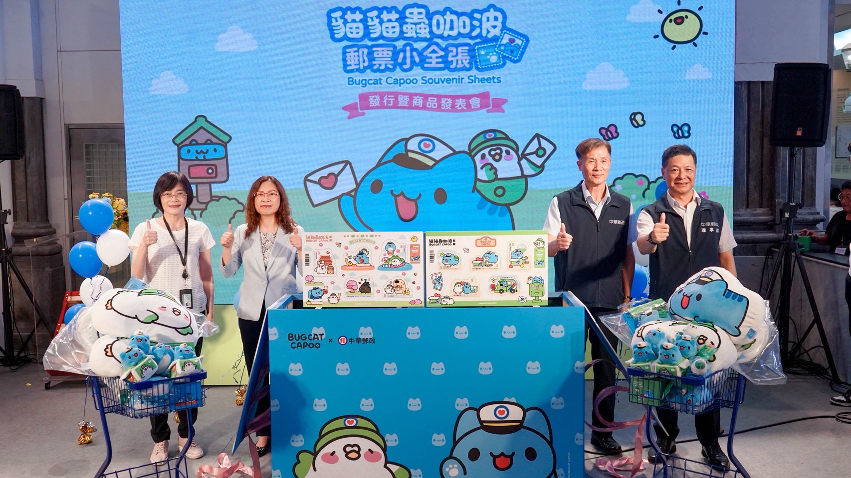 中華郵政公司於今(30)日下午2時,在臺北北門郵局一樓挑高大廳舉辦「貓貓蟲咖波郵票小全張」發行暨商品發表會,由副主任委員王婉如主持,邀請民眾共同迎接療癒系角色咖波首次登上郵票的精彩時刻。本次跨界合作展現郵票設計創新一面,也宣示中華郵政推動集郵業務年輕化的決心。