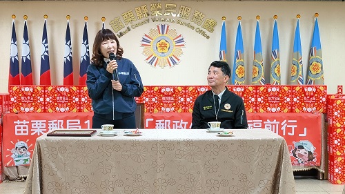 | 活動內容 | 1、10:00-10:10 參觀苗栗縣榮民服務處活動花絮 2、10:10-10:20 貴賓致詞: (1)苗栗郵局局長郭白慧 (2)苗栗縣榮民服務處處長陳立中 (3)中華郵政工會苗栗分會理事長梁興文 3、10:20-10:30 捐贈年節禮盒 4、10:30-10:40 苗栗縣榮民服務處致贈感謝狀 5、10:40 活動結束 |